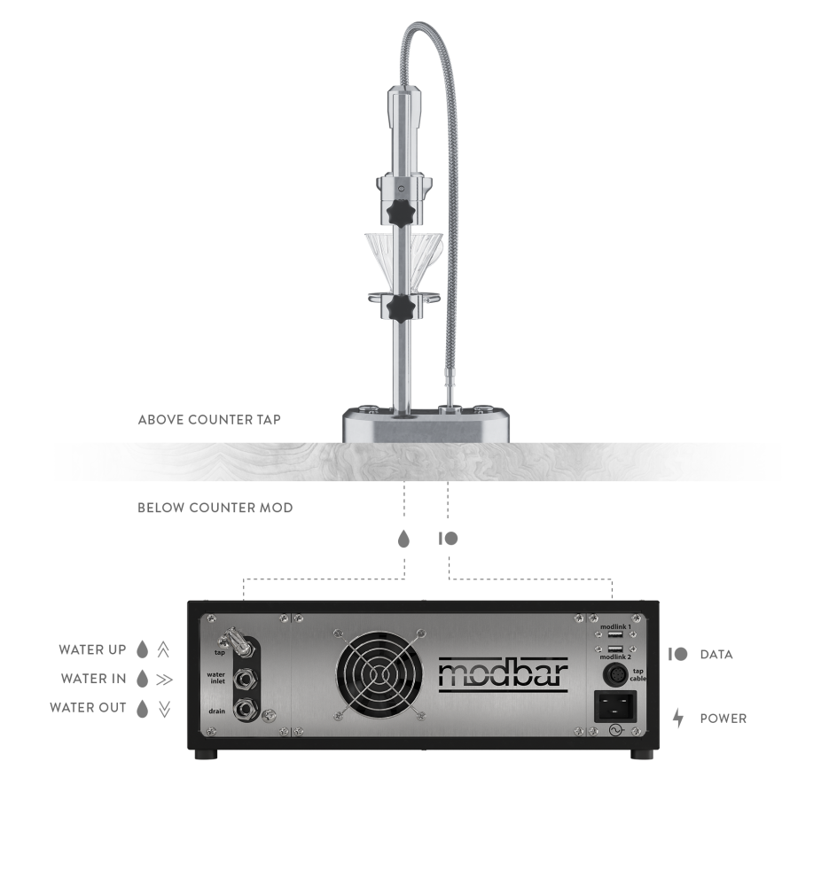 يتكون جهاز التقطير مود بار من متجر أبان من اثنين من صنبور للصب، بحيث يتصل كل واحد منهما بوحدة واحدة من أسفل القاعدة، كما أنها مزودة بكابلات المياه والاتصالات وغلايات مزدوجة مع التحكم في درجة الحرارة بمنطقتين، إضافةً إلى احتوائه على حلقة حامل وطرفين لتوزيع ورش المياه فوق حبيبات القهوة بشكل متساوي على جميع الجوانب أثناء عملية التخمير، وهو ما يسمح باستخلاص كامل النكهة القوية للقهوة المقطرة.