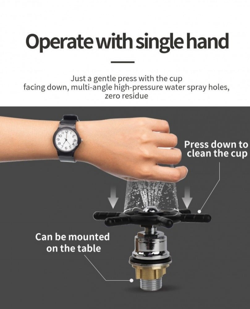 يعتمد على قوة المياه لتدوير راس الرينزر مما يؤدي الي وصول المياه الى كامل الكوب عند الغسيل