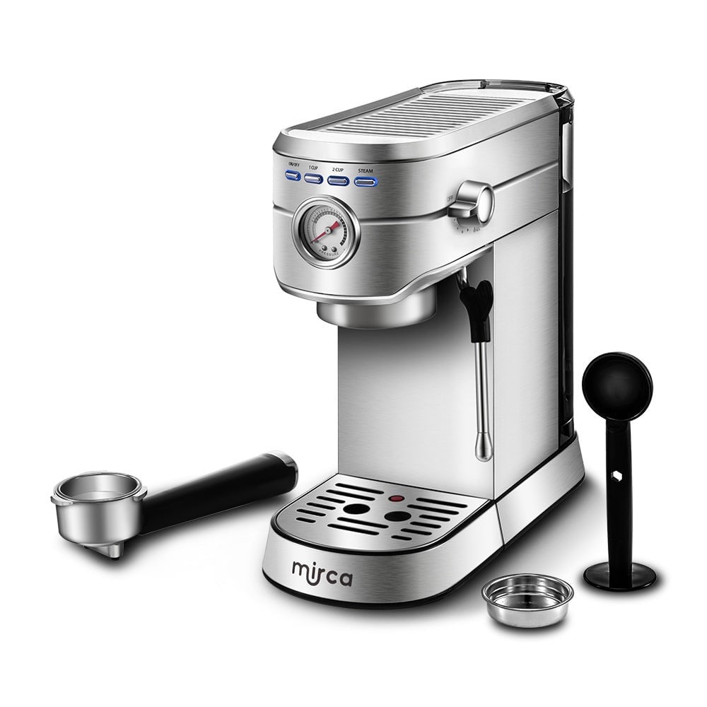 مكينة الإسبريسو هي مكينة جديدة بأداء قوي وسهولة استخدام. لأنها تتميز بهيكل متين مصنوع من المعدن المقاوم للصدأ، بالإضافة إلى حجمها الصغير بحيث لا يتجاوز عرضها 150 مم، مما يجعلها مثالية للإستعمال المنزلي.